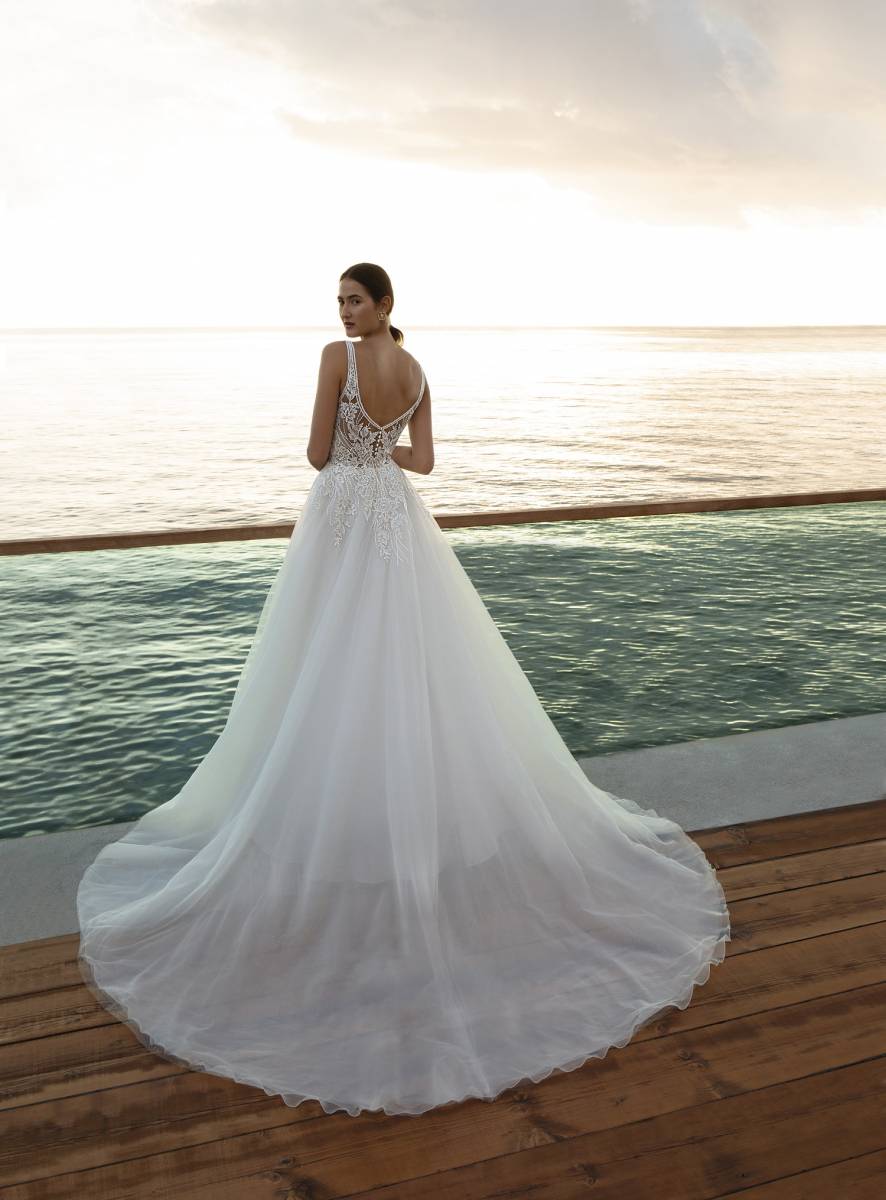 C'est une collection qui propose des robes de mariées avec notamment des dos travaillés, elles donnent ainsi des coupes voluptueuses proposant également des hauts en transparence.