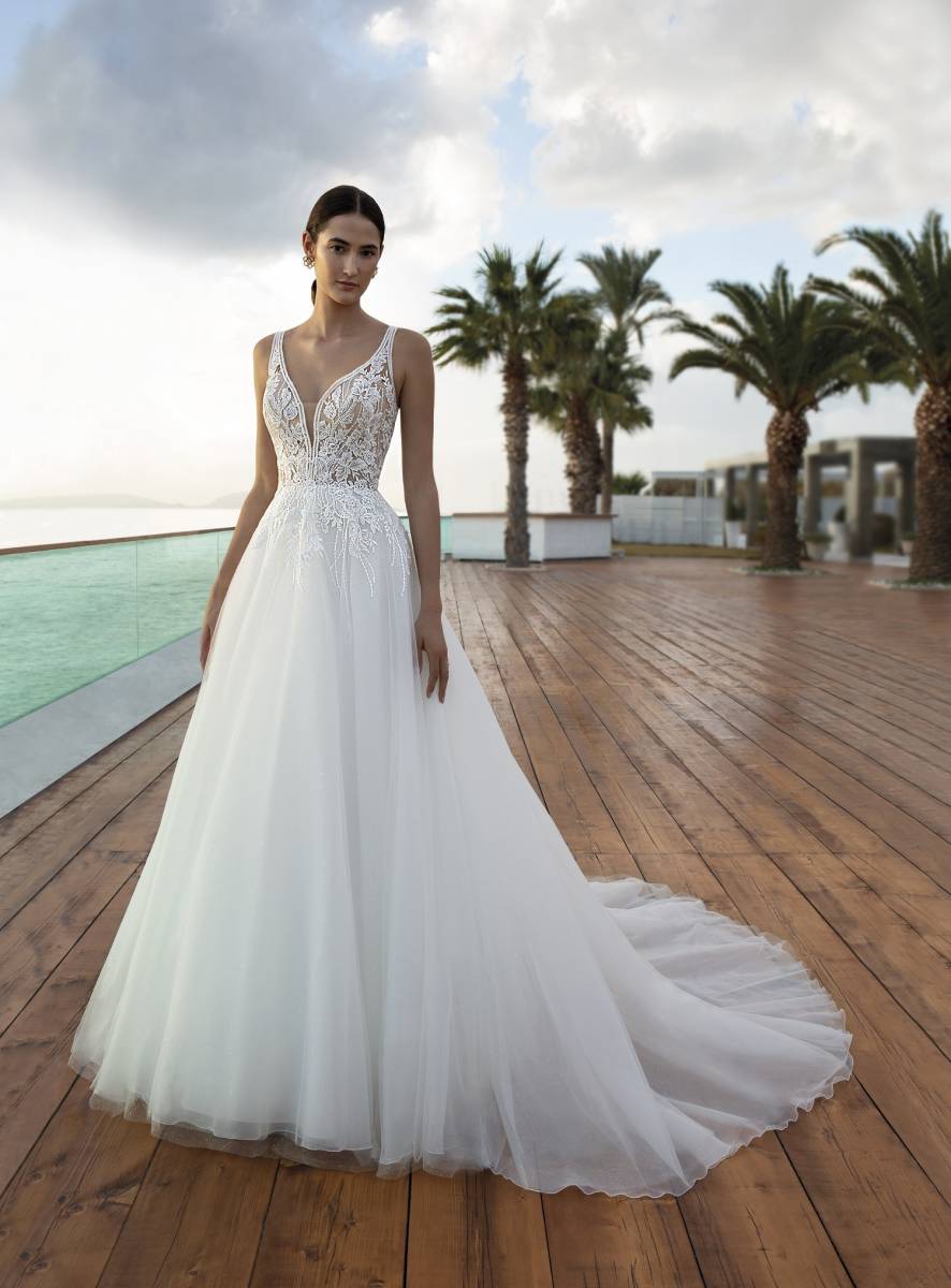 La marque Cosmobella propose une collection de robes de mariées alliant finesse et élégance.